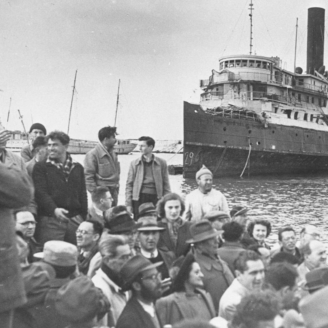 In 1944, at his first Zionist conference, John met David Ben-Gurion. From him, he learned of the Haganah, the Jewish underground army in Palestine. After returning home, Grauel soon noticed a steady stream of young men going in and out of an adjoining office. One day, his curiosity got the better of him, and he walked next door to introduce himself to the man in charge, Bucky Karmatz. Over a lunch of sandwiches at Karmatz’s desk, John discovered that the office was a recruiting station for Haganah. When the two men parted company, John recorded, “I knew I had found my niche. I would join Haganah…to become part of that organization to rescue those who could be helped to leave Europe. I liked that affirmation of life after the war.”